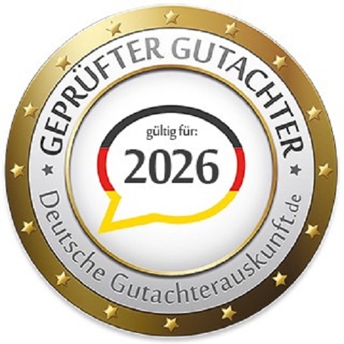 Geprüft, Personenzertifiziert, registriert, überwacht und rezertifiziert durch die mit dem Deutschen Gutachter und Sachverständigen Verband e.V. kooperierenden, gemäß DIN EN ISO/IEC 17024 akkreditierten / anerkannten und prüfenden, europäischen Zertifizierungsstellen EU/CE - European Institute of Certificated and Qualified Experts und EEG - European Experts Group - Zertifizierte Sachverständige in Europa